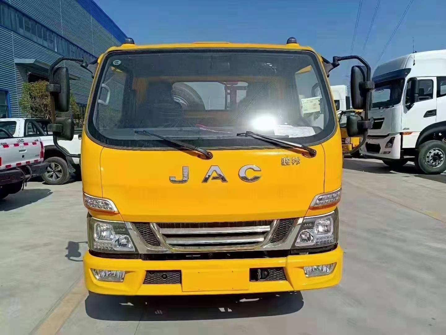 底盤配置:江淮高端駿鈴V5駕駛室,單排1900mm寬體3人座,3365mm軸距,發動機可選全柴132馬力與安徽康明斯130馬力。星銳五擋變速箱,斷氣剎,7.00R16鋼絲輪胎,ABS,液壓方向助力,氣推離合助力,定速巡航,OBD接口,框架式后視鏡,LED日間行車燈,多功能方向盤,收音機,后視鏡加熱,可調節方向盤,大燈調節,天窗通風口,多功能鷹眼儀表,發動機燃油預熱,多功能儀表,原廠空調,自動調整臂,PTO功能。